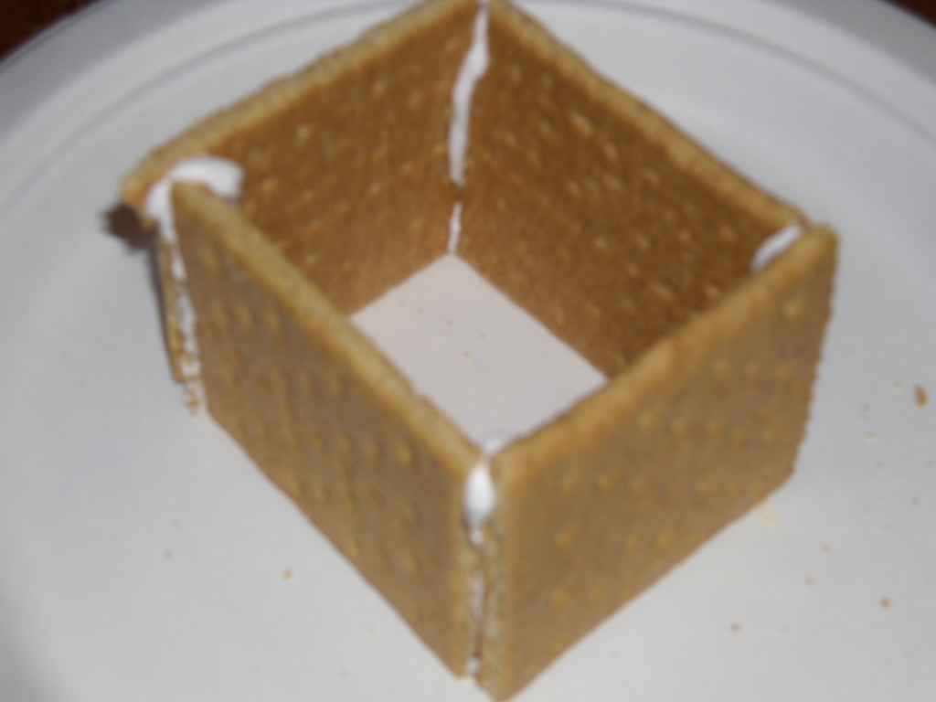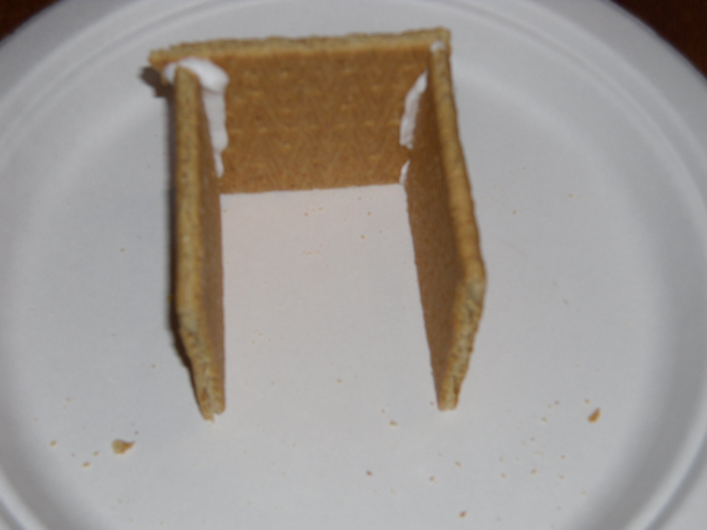 Pipe royal icing onto one side of graham cracker. This is your first wall.