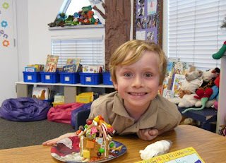 So in Kindergarten we made Gingerbread Houses during our Christmas Party. Well, really they were Graham Cracker Houses but the kids really didn't seem to mind at all. I assembled 16 base foundations in order for the kids to decorate the next day. I used Royal Icing as the glue and prepared little baggies to be used like mini pastry bags for each kid. We nipped the edges and they had a blast. To be honest, the classroom fell silent while they began their work. Such serious little builders!